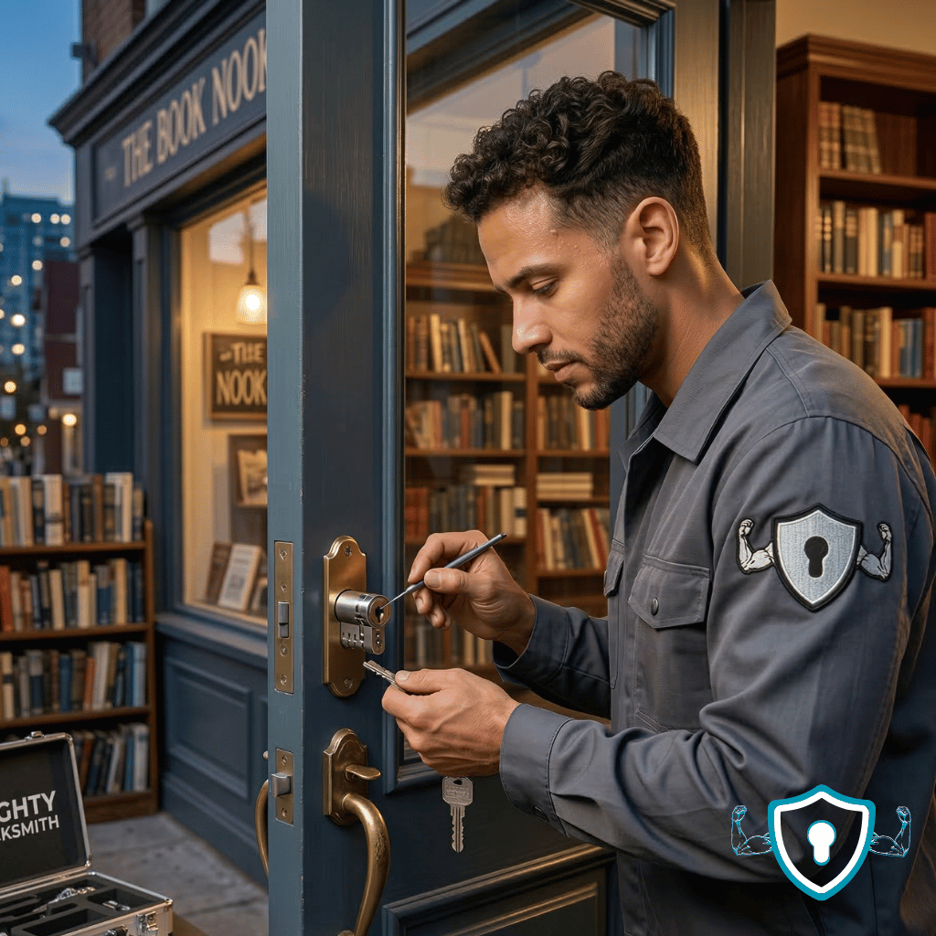Protect your business with our top-rated commercial locksmith services, specializing in high-security lock installations, master key systems, and advanced access control. Mighty Locksmith delivers expert commercial lock repairs, push bar installations, and commercial door hardware upgrades to keep your enterprise completely secure.